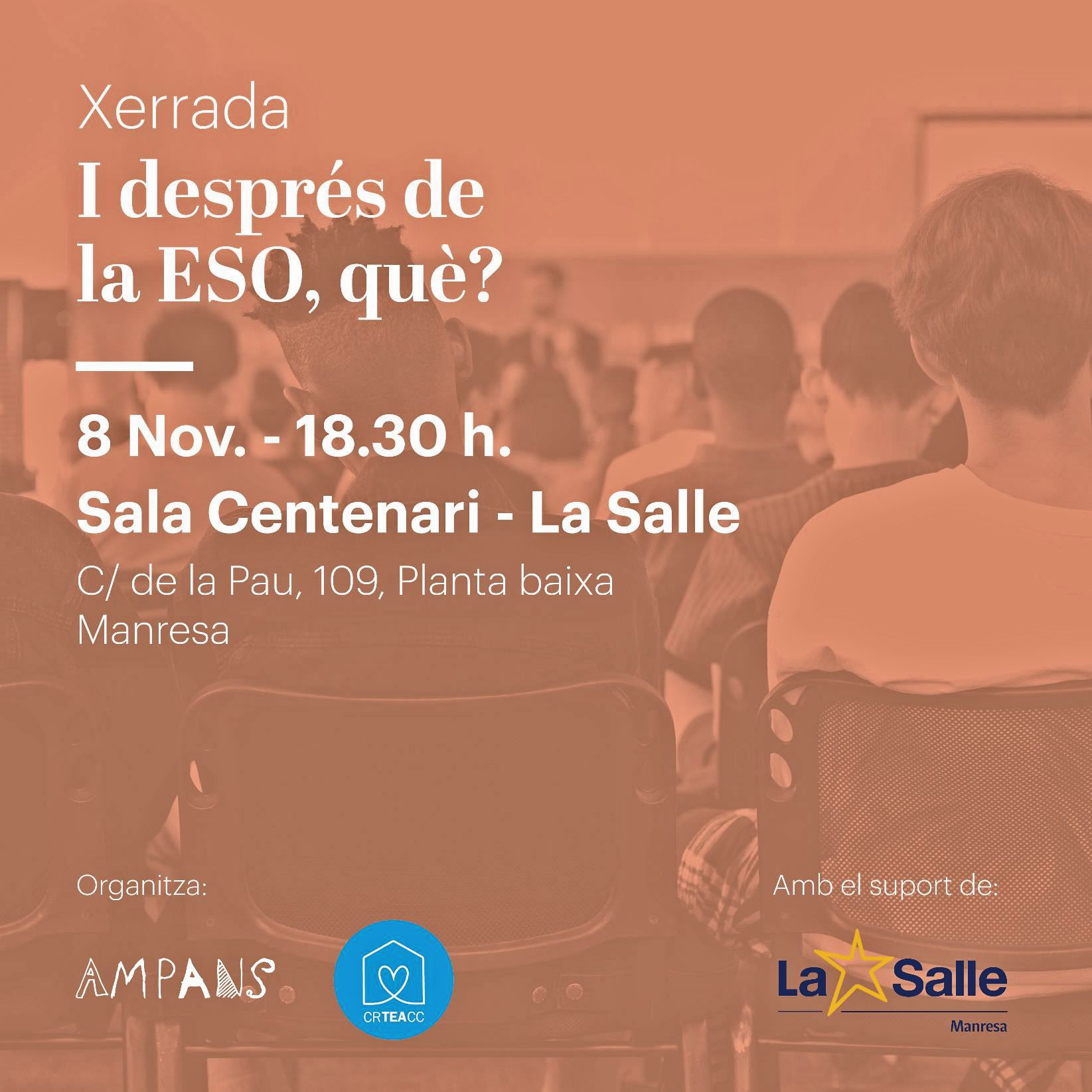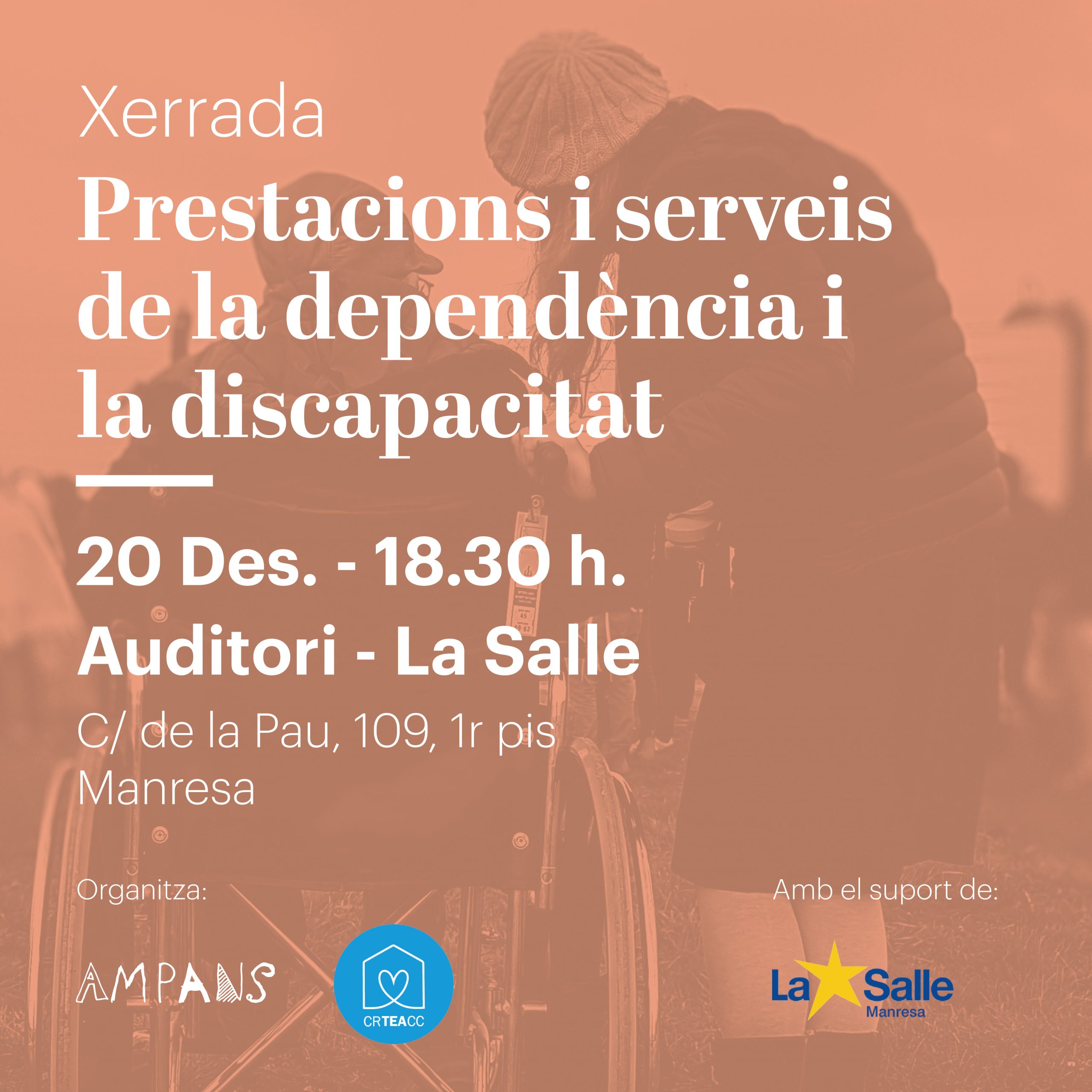 El 20 de desembre del 2022, a 2/4 de 7 de la tarda a l'auditori de La Salle Manresa, la Pilar Descalzo, de l'equip d'Atenció a la Dependència i a la Discapacitat de l'Ajuntament de Manresa, ens va fer una xerrada sobre les prerstacions i serveis de la dependència i la discapacitat.