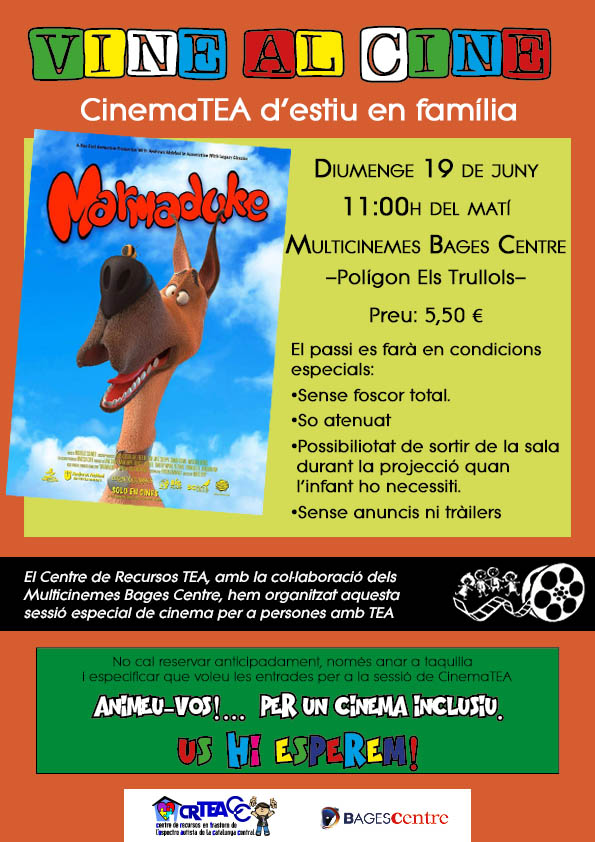 El proper diumenge 19 de juny, als Multicinemes Bages Centre de Manresa farem la primera sessió del CinemaTEA després de l’aturada per la pandèmia. Ja en tenim ganes!!!