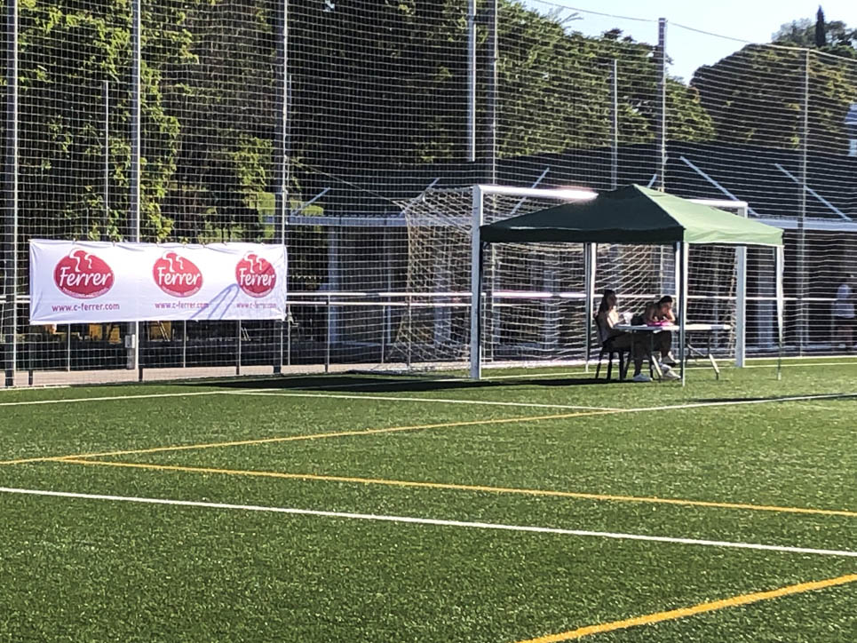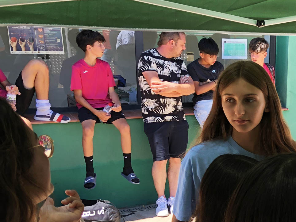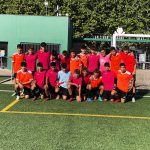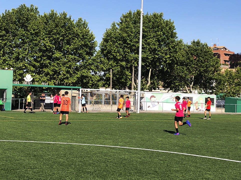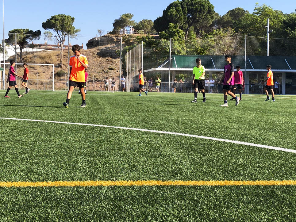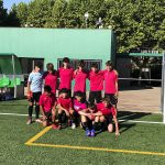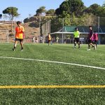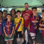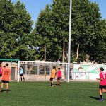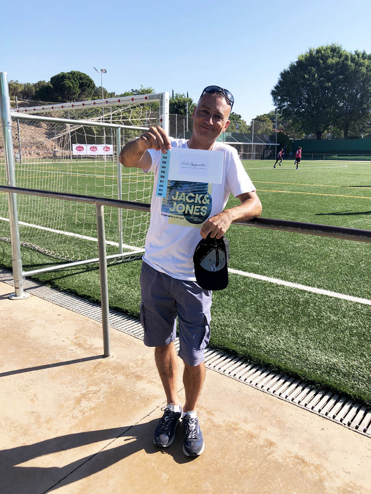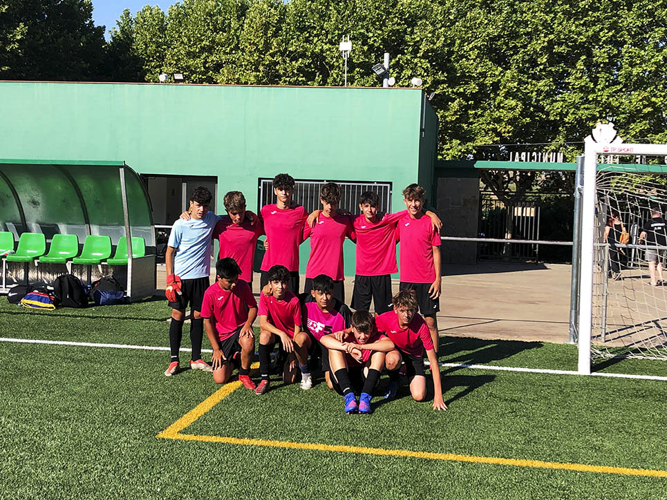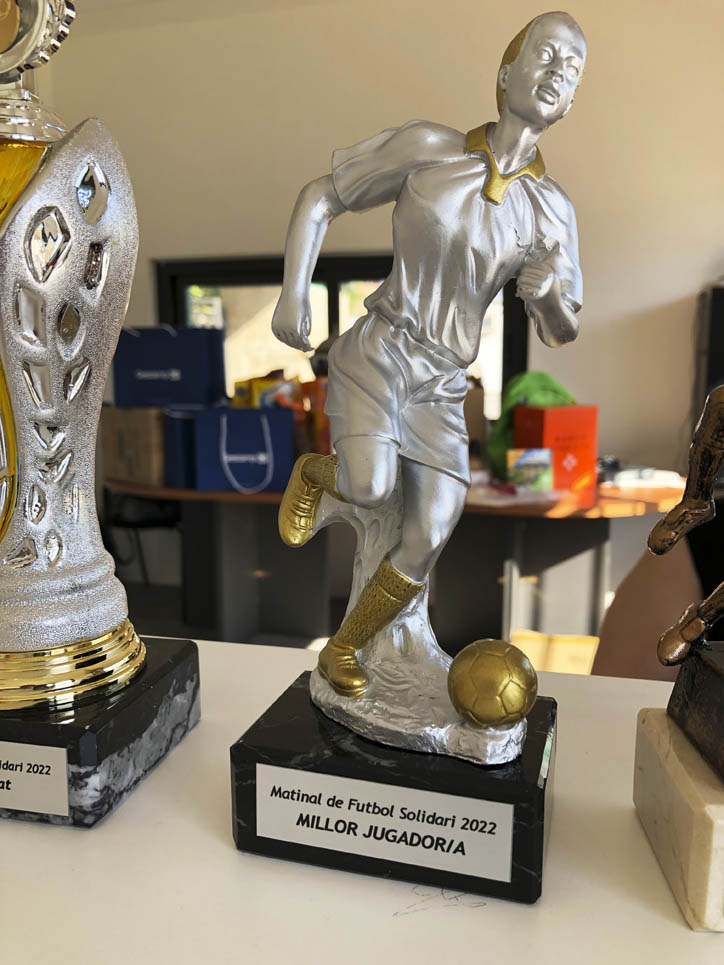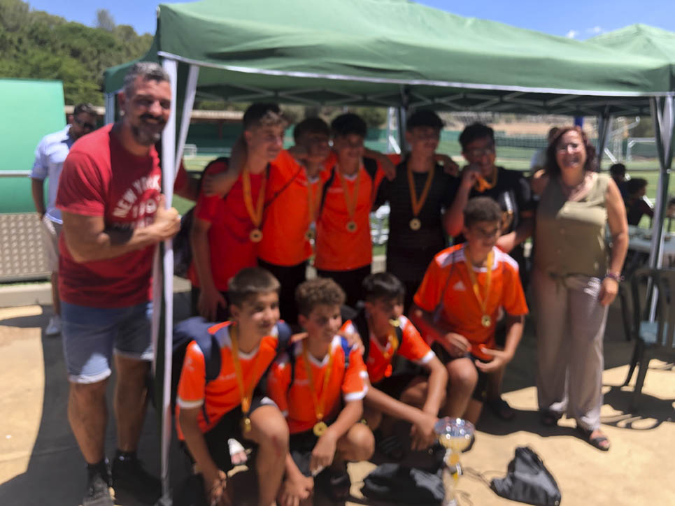 I ara ja comença tot. A 2/4 de 9 en punt, l’àrbitre, en Jordi, dona permís per encetar el torneig. S’enfronten l’únic equip de noies (Les xules del barri) contra Los Pajeros. Val a dir que les noies van estar de pega: una va agafar la COVID i no va poder venir, dues no es van presentar i de 8 van quedar en 5, però la filla d’un dels voluntaris, la Marta, va ser valenta i es va oferir per jugar amb elles. I va ser l’única noia que va marcar un gol contra els Coca Juniors!!! Bravo, noies!!!! No duien equip, jugaven amb ganes però van perdre el primer partir per 17 a 0. No es van acovardir i van continuar fins al final, tot i no guanyar cap partit. La majoria d’ells i elles són de la mateixa aula de La Salle i es van fer una foto junts. Com que van quedar eliminades del triangular van poder anar a fer un bany a la piscina abans de recollir els premis. Se l’havien ben guanyat.