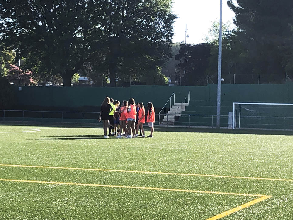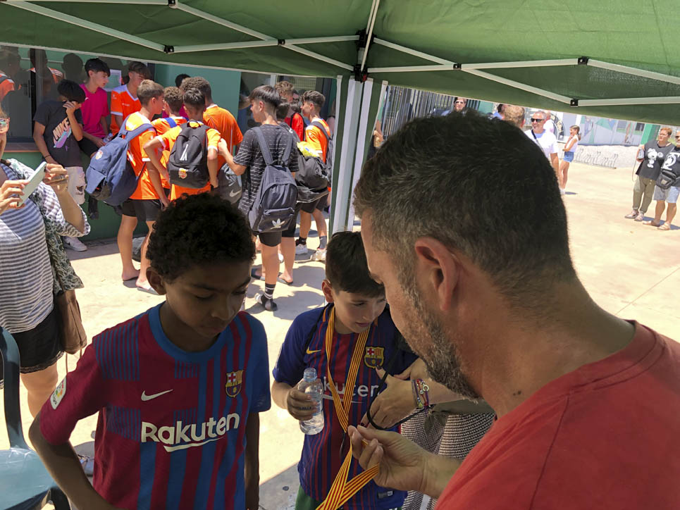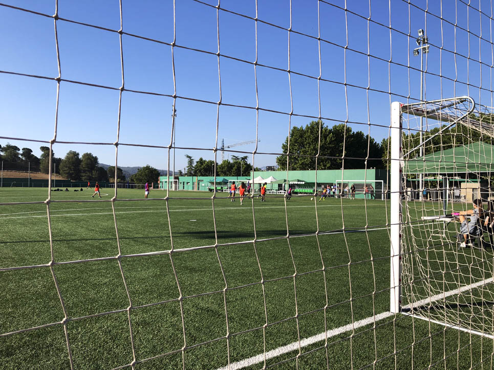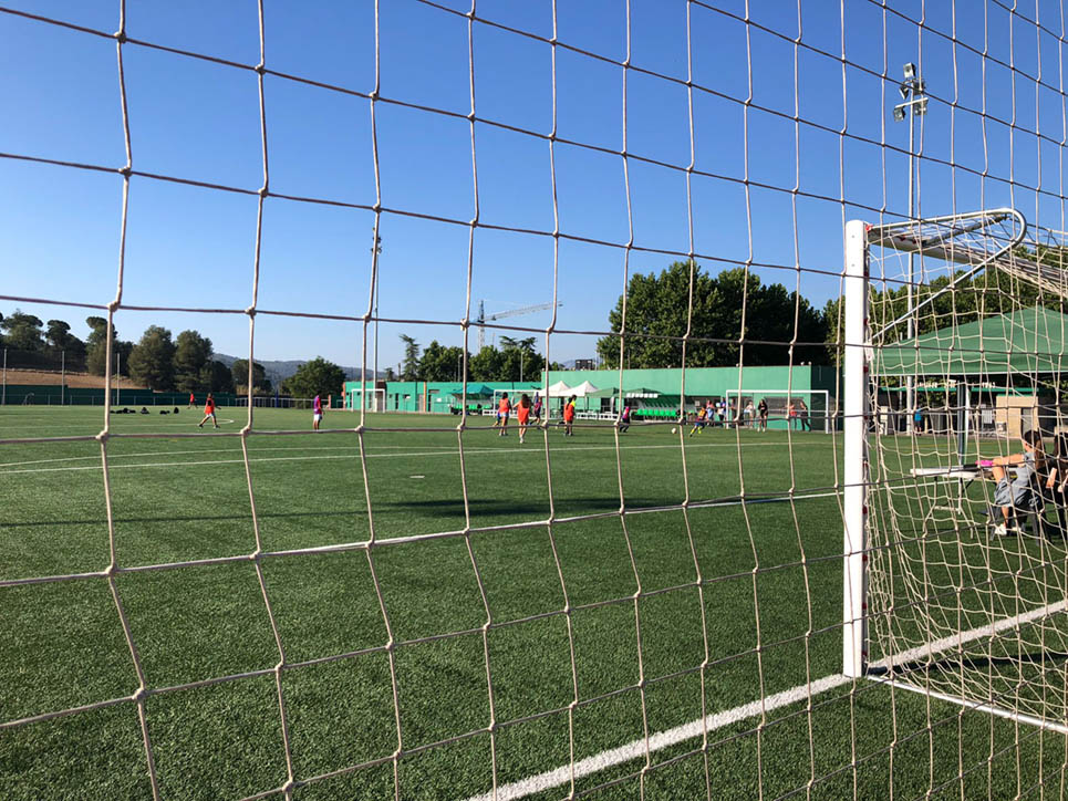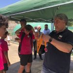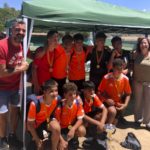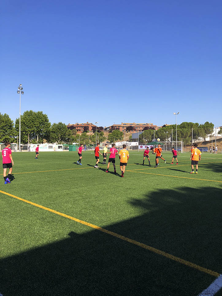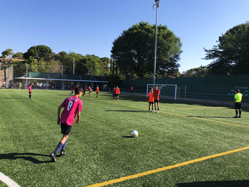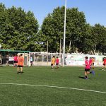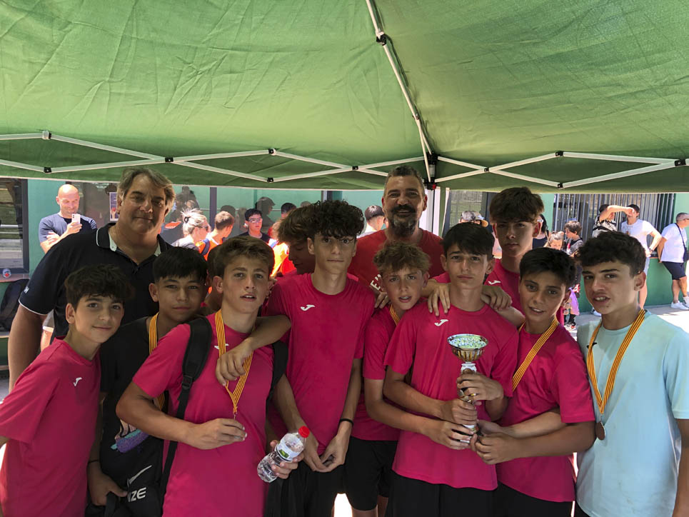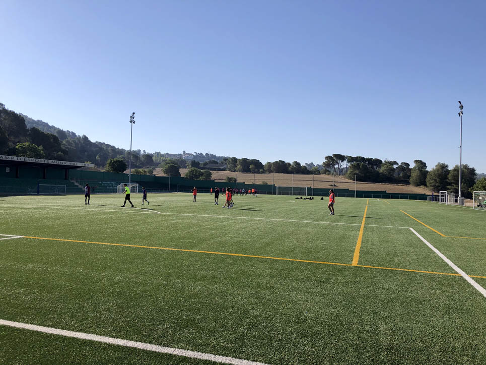 I ara ja comença tot. A 2/4 de 9 en punt, l’àrbitre, en Jordi, dona permís per encetar el torneig. S’enfronten l’únic equip de noies (Les xules del barri) contra Los Pajeros. Val a dir que les noies van estar de pega: una va agafar la COVID i no va poder venir, dues no es van presentar i de 8 van quedar en 5, però la filla d’un dels voluntaris, la Marta, va ser valenta i es va oferir per jugar amb elles. I va ser l’única noia que va marcar un gol contra els Coca Juniors!!! Bravo, noies!!!! No duien equip, jugaven amb ganes però van perdre el primer partir per 17 a 0. No es van acovardir i van continuar fins al final, tot i no guanyar cap partit. La majoria d’ells i elles són de la mateixa aula de La Salle i es van fer una foto junts. Com que van quedar eliminades del triangular van poder anar a fer un bany a la piscina abans de recollir els premis. Se l’havien ben guanyat.
