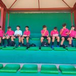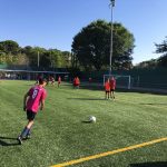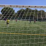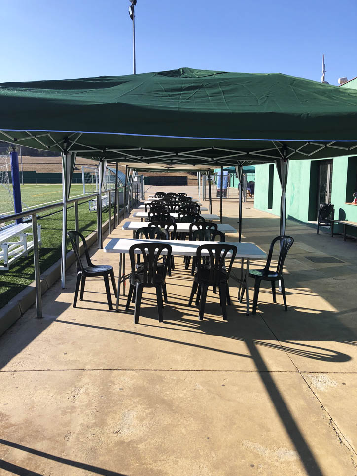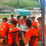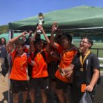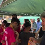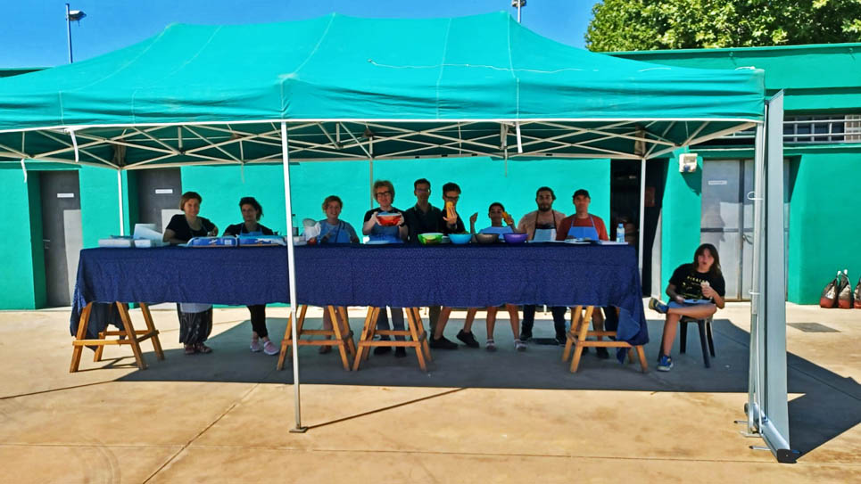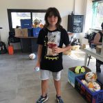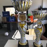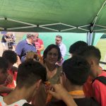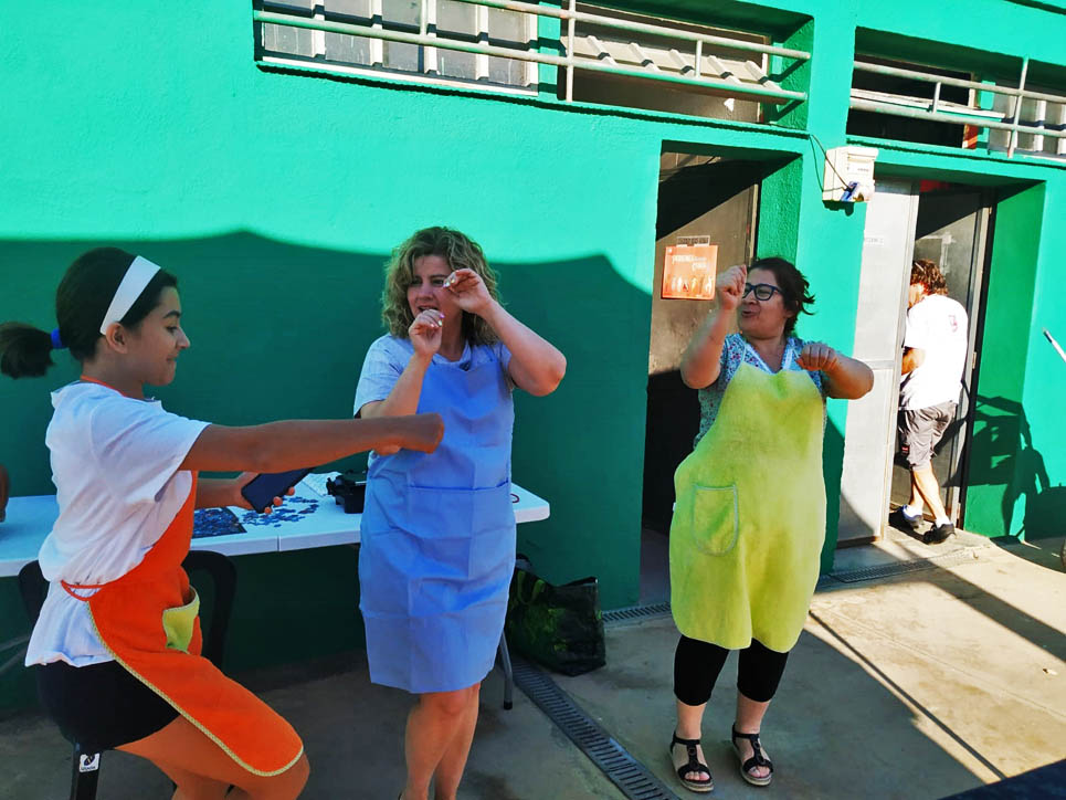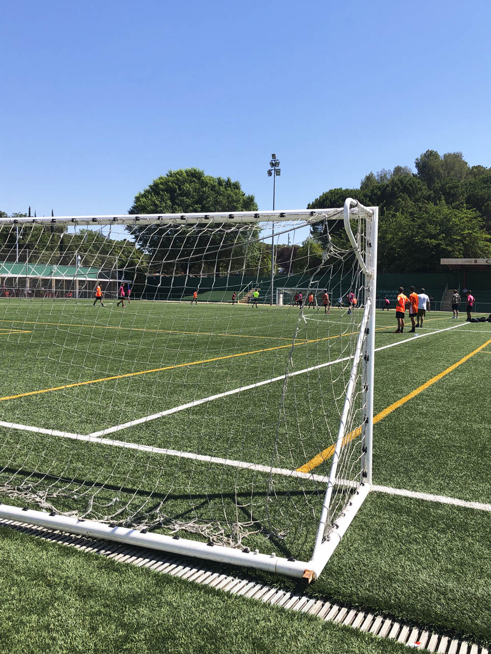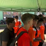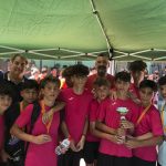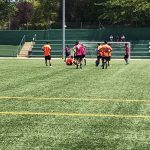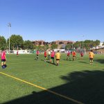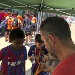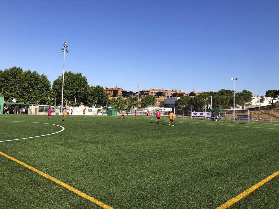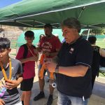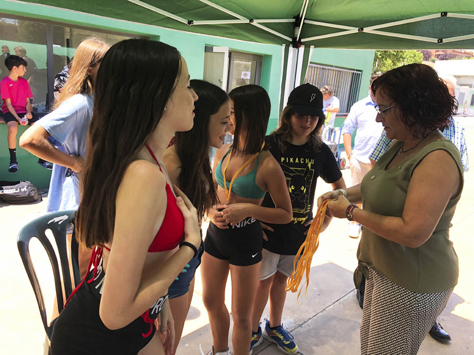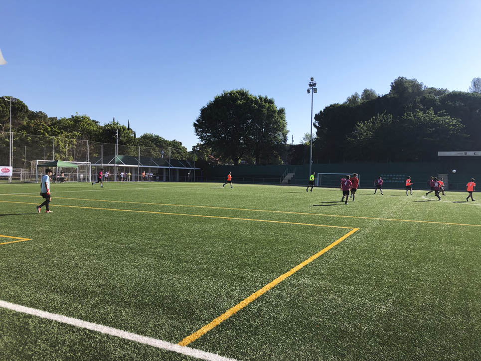 I ara ja comença tot. A 2/4 de 9 en punt, l’àrbitre, en Jordi, dona permís per encetar el torneig. S’enfronten l’únic equip de noies (Les xules del barri) contra Los Pajeros. Val a dir que les noies van estar de pega: una va agafar la COVID i no va poder venir, dues no es van presentar i de 8 van quedar en 5, però la filla d’un dels voluntaris, la Marta, va ser valenta i es va oferir per jugar amb elles. I va ser l’única noia que va marcar un gol contra els Coca Juniors!!! Bravo, noies!!!! No duien equip, jugaven amb ganes però van perdre el primer partir per 17 a 0. No es van acovardir i van continuar fins al final, tot i no guanyar cap partit. La majoria d’ells i elles són de la mateixa aula de La Salle i es van fer una foto junts. Com que van quedar eliminades del triangular van poder anar a fer un bany a la piscina abans de recollir els premis. Se l’havien ben guanyat.