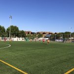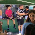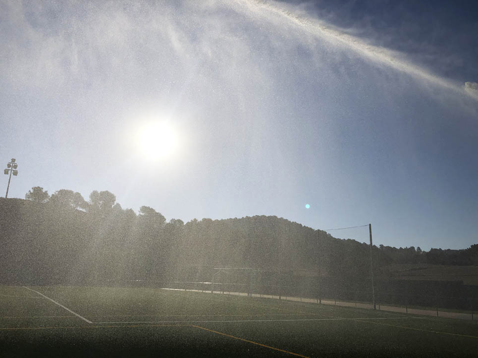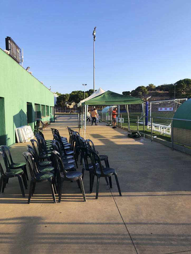 Fa molta calor… Són dos quarts de dues i cal hidratar-se gràcies a l’aigua de Viladrau gentilesa d’Euroestrellas. Val a dir que als  jugadors, als voluntaris i a l’àrbitre no els va faltar l’aigua en cap moment, i fresqueta de les neveres.