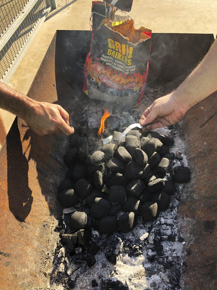 A les 7 del matí els voluntaris arriben amb molta alegria. Uns munten i preparen el servei d’esmorzars, les carpes, les taules, les cadires, tot ha d’estar a punt. Altres es preparen per comptar els gols i apuntar els nois i noies que els facin. Quan ja tot és a punt, es fa el foc i comencem a sentir l’oloreta de les botifarres de Cal Singla i de les salsitxes del Porc de Palou. Tot boníssim amb el pa obsequi de Fet de farina… ens venia salivera. Quanta feina per tenir-ho tot a punt, i que bé que ho va fer tothom. Mentre el Santi rega el camp.